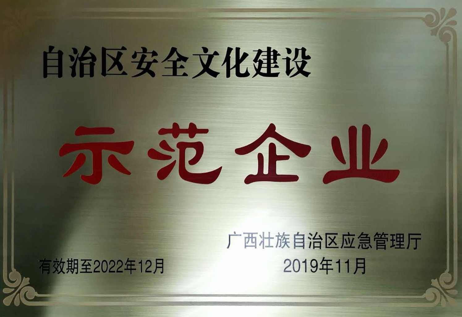 2019年評為自治區(qū)安全文化建設示范企業(yè)