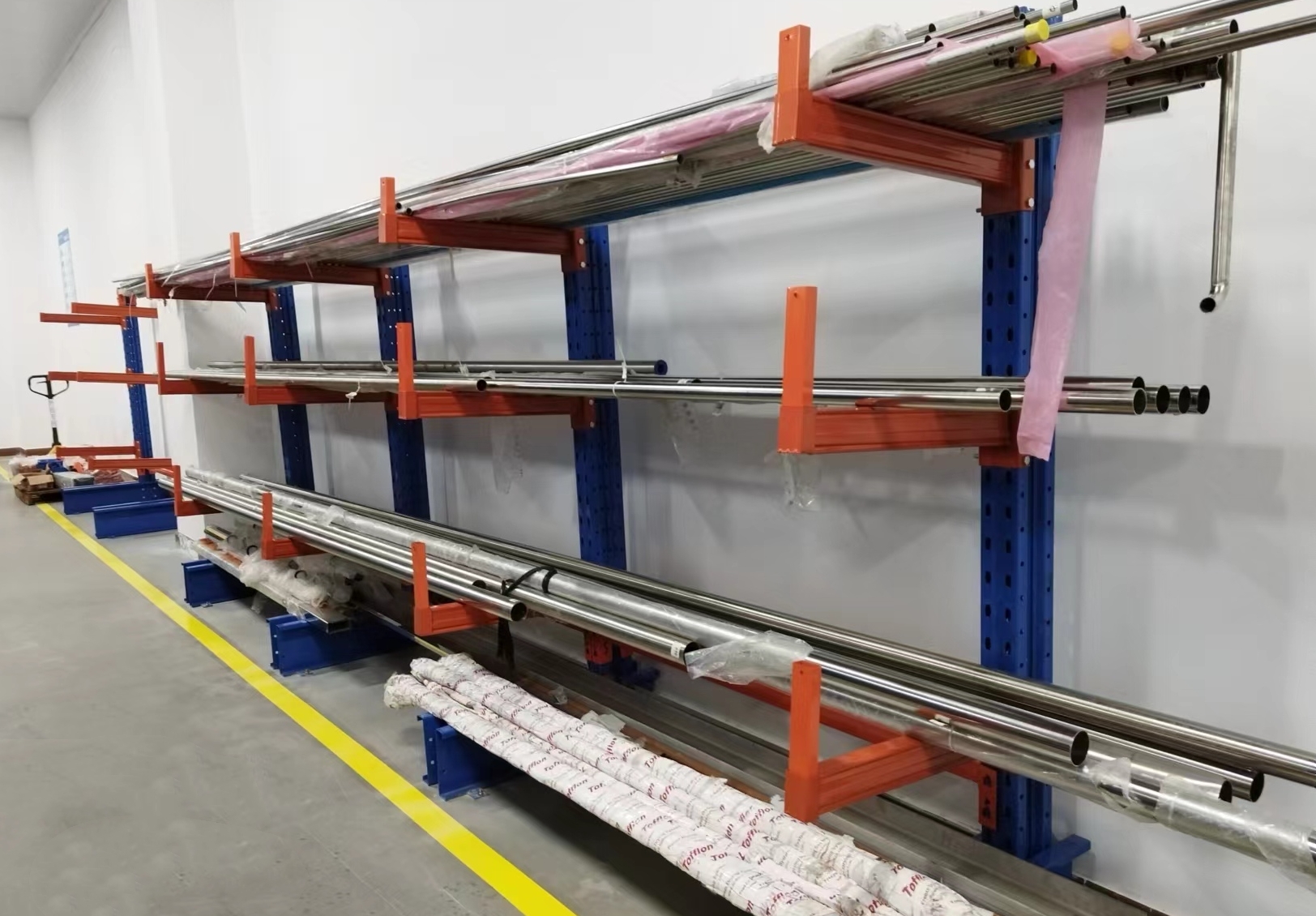 對(duì)于雙面懸臂式貨架不銹鋼管擺放凌亂,鋼管進(jìn)出困難,并影響人員車輛走動(dòng)的問(wèn)題,團(tuán)隊(duì)通過(guò)變更成2個(gè)單面懸臂式貨架,并將貨架移位靠墻壁擺放解決問(wèn)題。改善后,不銹鋼管進(jìn)出通暢,不影響人員車輛移動(dòng),同時(shí)減少了安全隱患。