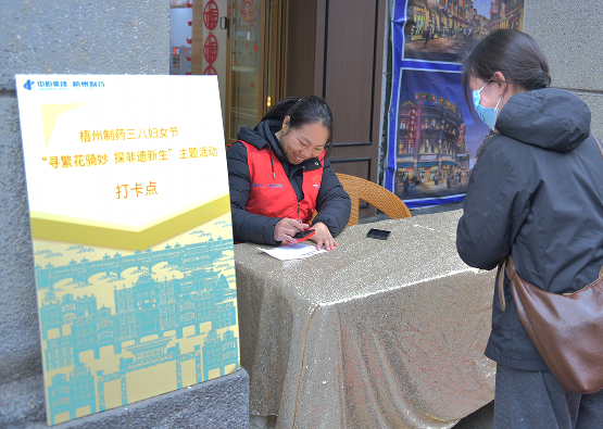 活動現(xiàn)場,女職工們?nèi)宄扇?,穿梭于騎樓城的大街小巷,感受百年騎樓的獨(dú)特魅力,探尋隱匿在歷史深處的非遺文化。在“非遺尋韻‘跌打丸’”任務(wù)點(diǎn),大家紛紛駐足,掃碼觀看《“丸”世傳奇》短劇,深入了解中華跌打丸這一非遺瑰寶的歷史與傳承。蓋在主題卡上的“中華”印章,為這場探索之旅增添了濃厚的歷史韻味。
