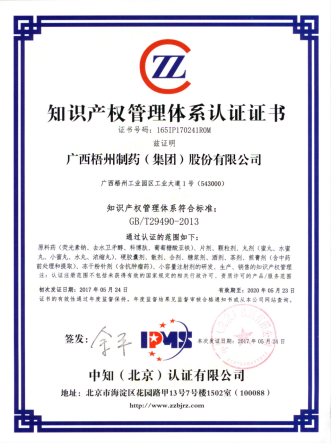 梧州制藥作為制藥企業(yè)將知識產(chǎn)權(quán)放在企業(yè)管理的戰(zhàn)略高度,在2017年4月通過了知識產(chǎn)權(quán)管理體系認證。通過貫徹《企業(yè)知識產(chǎn)權(quán)管理規(guī)范》GB/T 29490-2013,公司整合規(guī)范,構(gòu)建了科學(xué)合理的知識產(chǎn)權(quán)管理體系,形成了一套系統(tǒng)適合自身的完整知識產(chǎn)權(quán)管理制度、體系、程序和管理方法。