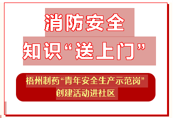 消防安全知識(shí)“送上門”梧州制藥“青年安全生產(chǎn)示范崗”創(chuàng)建活動(dòng)進(jìn)社區(qū)近日,梧州制藥青年員工積極參與“中恒集團(tuán)青年安全生產(chǎn)示范崗”創(chuàng)建工作,不但注重將創(chuàng)建活動(dòng)與日常班組生產(chǎn)工作有機(jī)融合,還結(jié)合今年第23個(gè)全國安全